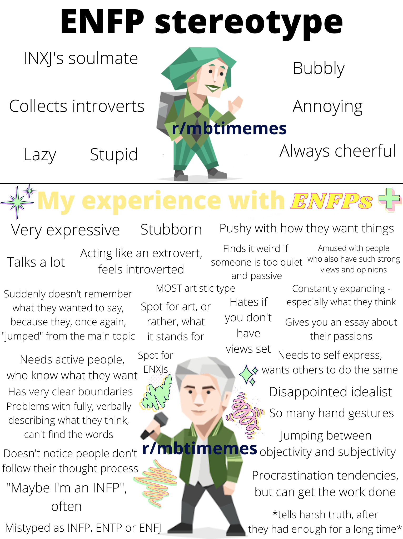 반면에, ENFP-A 형은 과거를 더 빨리 극복하기 때문에 더 행복함을 느끼지만, 문제들을 해결하지 않고 그냥 내버려 두는 경향도 있다고 해요.