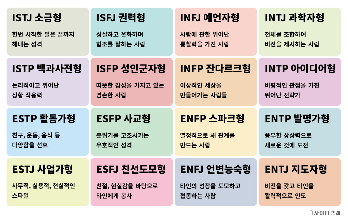 예전에는 사람의 성격을 보고 혈액형 유추했다면 최근에는 이 mbti를 유추하는 것 같지요. mbti 과몰입이라는 단어가 있을 정도로 mbti 이야기는 어딜가나 항상 들리기 마련입니다.